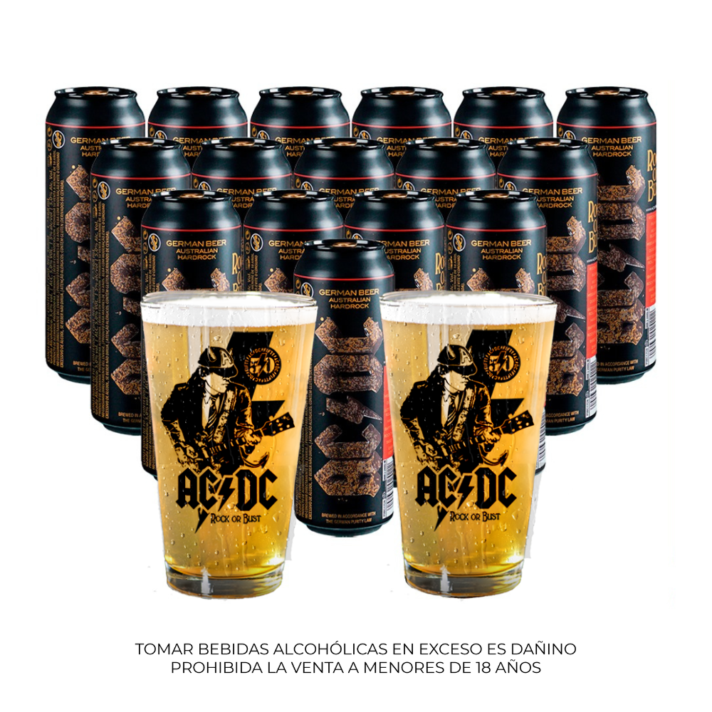 Pack 16 Cervezas ACDC Pale Lager 568ml + 02 Vasos